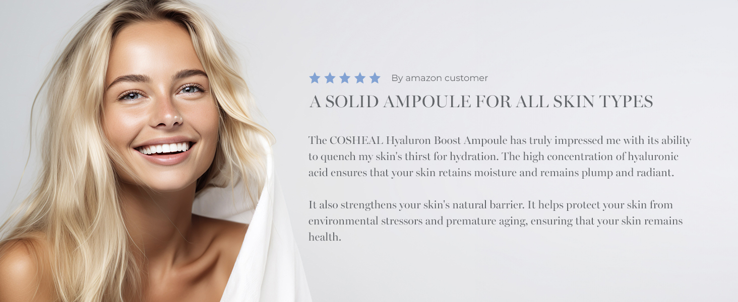 • PATENTED Hydsol-H6 COMPLEX: Hyaluronic Acids is a key molecule for anti-aging and skin elasticity due to its ability to draw and retain moisture. Hyaluron Boost Ampoule is formulated with 6 different Hyaluronic Acid complex for targeting all types of skin surface layers to plump and increase resilience.