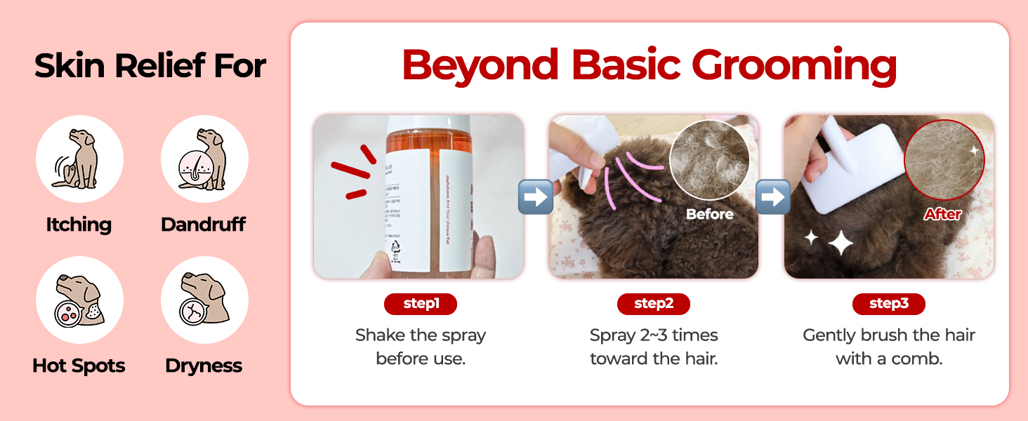 - Experts Developed, Vet Approved – Our Dream Pet Expert Team: Veterinarian, Medical Doctor, and Korean Medical Doctor, carefully selected and tested the ingredients to make sure there must be NO SIDE EFFECTS & ALLERGY. Best daily grooming care item without any worries!!