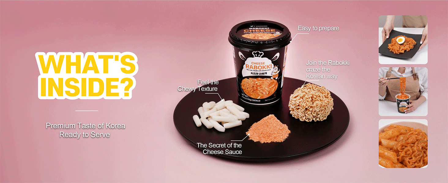 KINIKORA Premium Instant Rabokki Cup – Cheese Flavor, 2 Cups, Korean Ramen & Tteokbokki, Quick and Easy Street Food