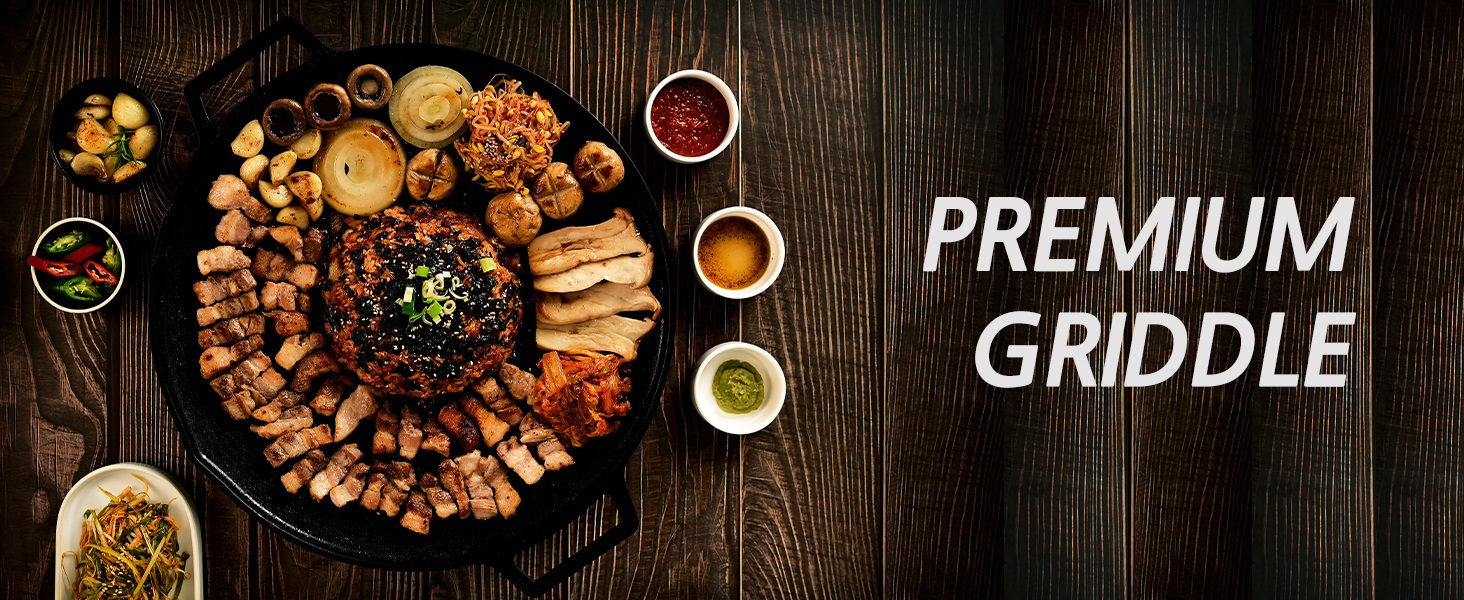 - MULTIPURPOSE GRIDDLE PAN – Perfect for Korean BBQ, pork belly, steak, bacon, burgers, sausages, eggs, ramen, kimchi, and more — enjoy authentic grilled flavors anywhere.MADE IN KOREA QUALITY – Proudly made in Korea, offering superior strength, durability, and craftsmanship built to last.