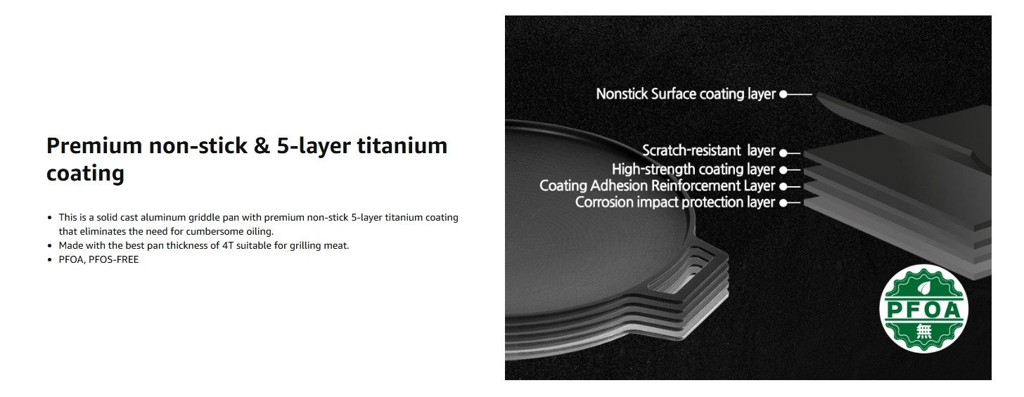 - 5-LAYER TITANIUM NONSTICK COATING – Cook with ease and clean up effortlessly with a premium 5-layer titanium coating that allows oil-free, healthy grilling.