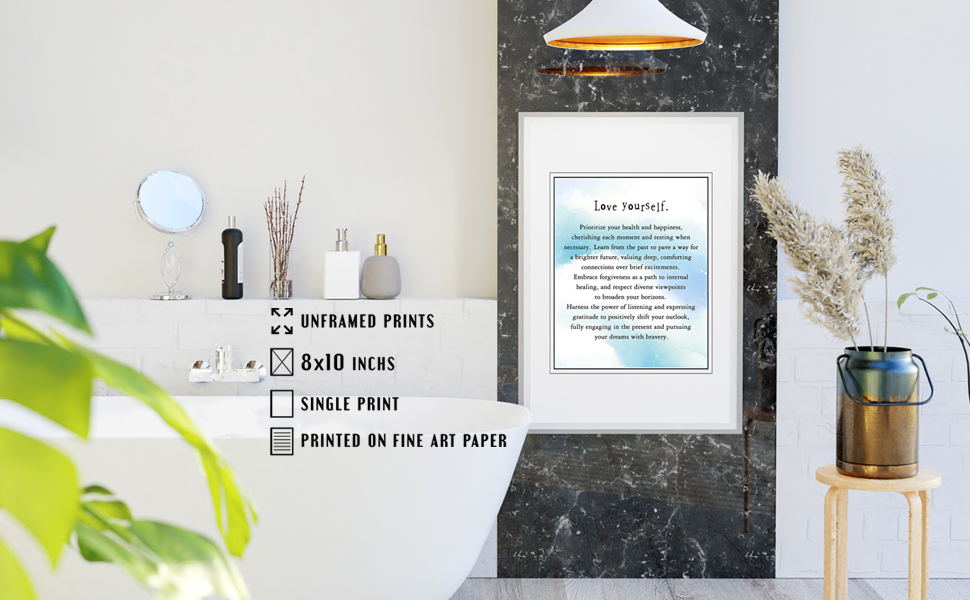 MAYJ Love Yourself Inspirational Watercolor Prints – Gift Motivational Wall Art Home Office Bedroom Bathroom Class 8X10 Unframed