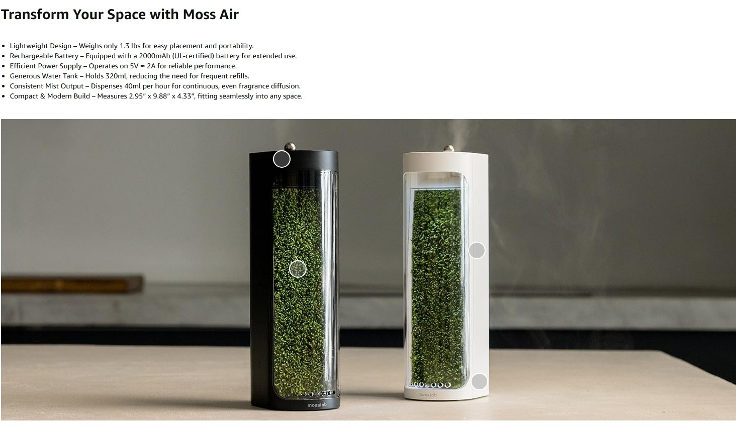 • [A Breath of Forest Calm] Create instant serenity with living moss and a soothing mist fountain, bringing nature’s quiet beauty indoors.