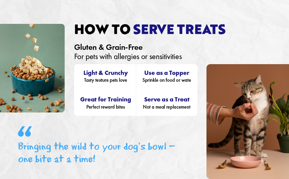 • LOVELY NATURAL TREATS FOR DOGS AND CATS: Our light and airy freeze-dried treats offer a crunchy texture that pets love while preserving natural flavors and essential nutrients—making them an irresistible choice for even the pickiest eaters. Grain-free, gluten-free, and raw-diet approved, these treats are not only perfect as a high-value training reward but also serve as a nutritious meal topper to enhance both flavor and nutrition, making every bite more enjoyable for your furry friend.