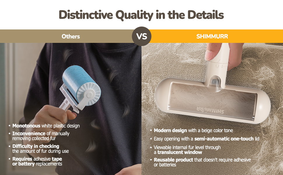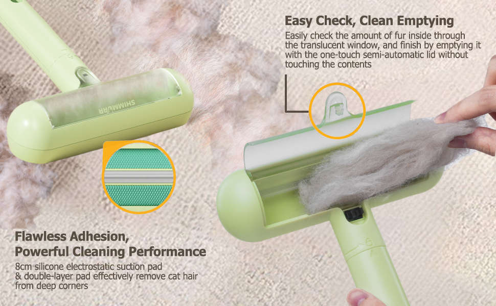 QUICK MAINTENANCE: Large capacity compartment with easy-press release button for simple disposal of collected pet hair