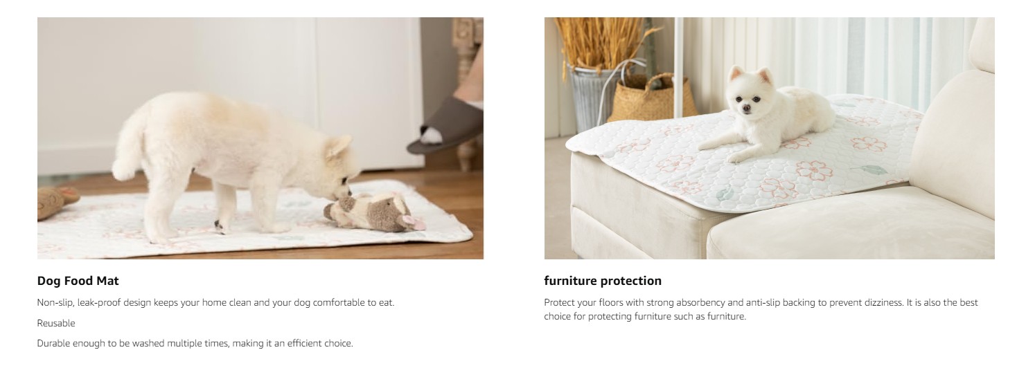 • [The comfort of humans and dogs through various uses] Training pads can be used comfortably on the floor of the house, sofa, bed, dog tableware, under water grooves, rugs, car trips, and more. It can be used to help dogs with potty training or elderly dogs suffering from urinary incontinence.
