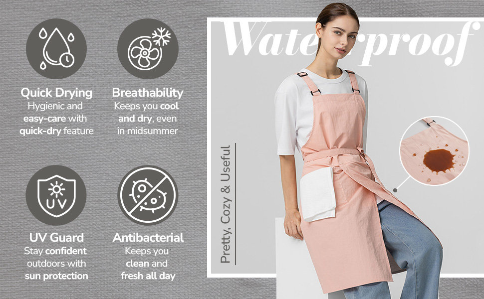 Unisex Waterproof Apron Restaurant Cooking Cafè Flower Shop Baking Kitchen Length Adjustable