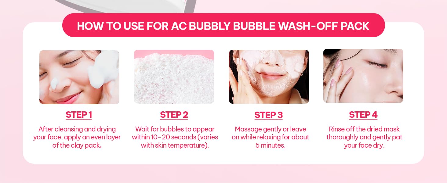 AC Bubbly Bubbly Wash-Off Pack 125g/4.4Oz, Kaolin, Deep Cleansing, Acne Prone Skin, Bubble Wash, Exfoliating, Bubble Mask, Removing Sebum and Dead Skins, Instant Bubbles Pop up