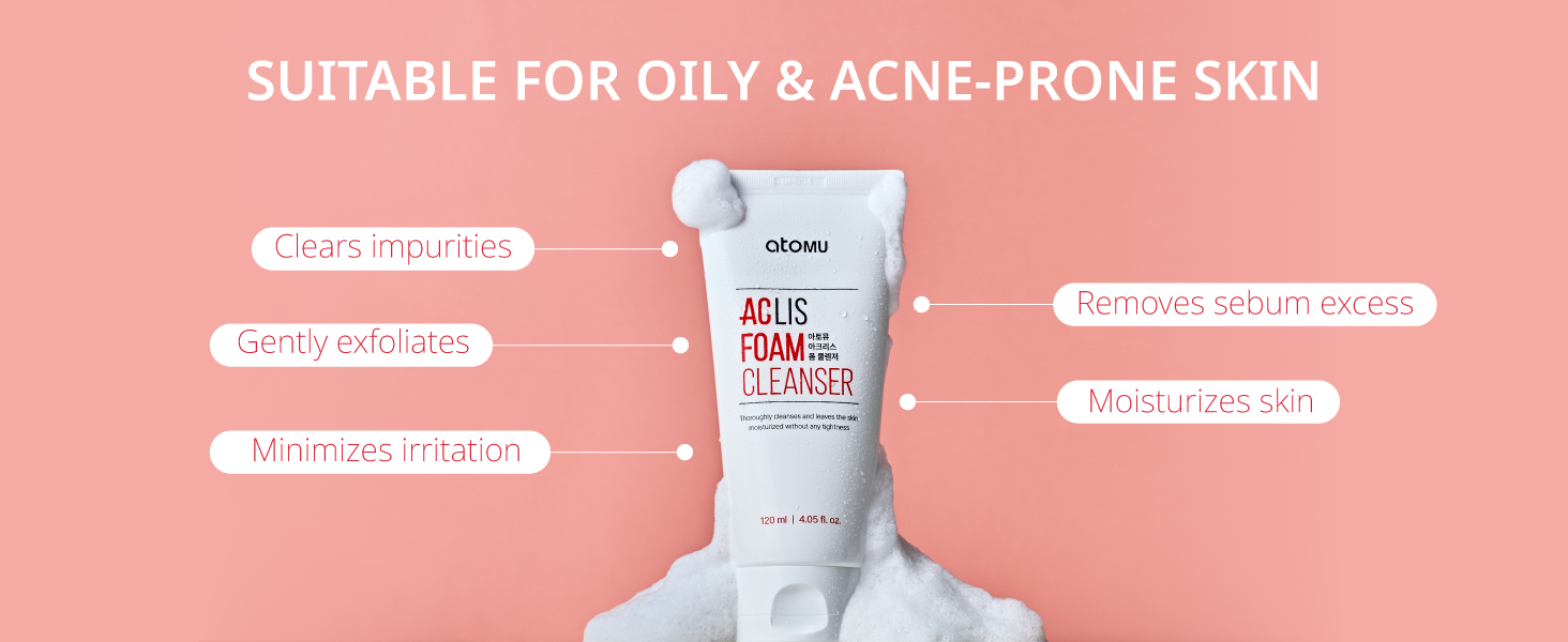 ATOMU Mildly alkaline oily sebum removal deep cleansing ACLIS foam cleanser, 4.05 fl.oz.