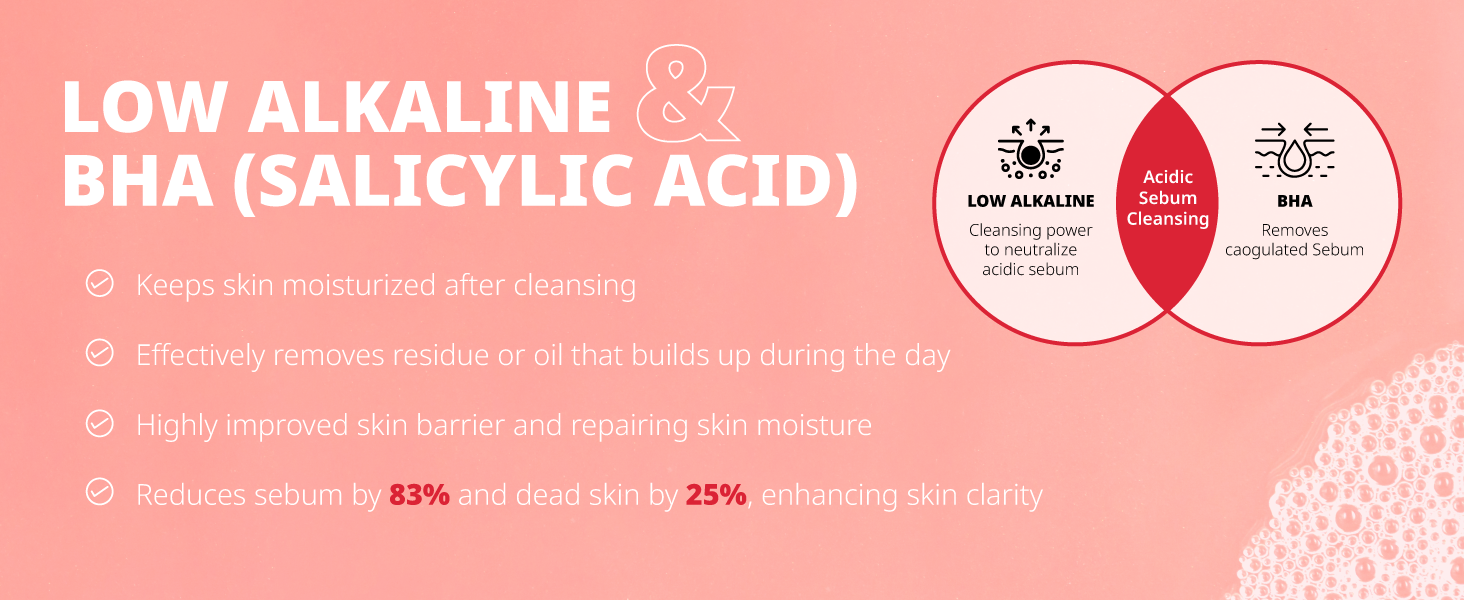 • [Deep Cleanse] Our mildly alkaline BHA cleanser contains salicylic acid, which effectively removes acidified oil, waste, and sebum from the skin’s surface leaving your face squeaky clean and ready for applying makeup.