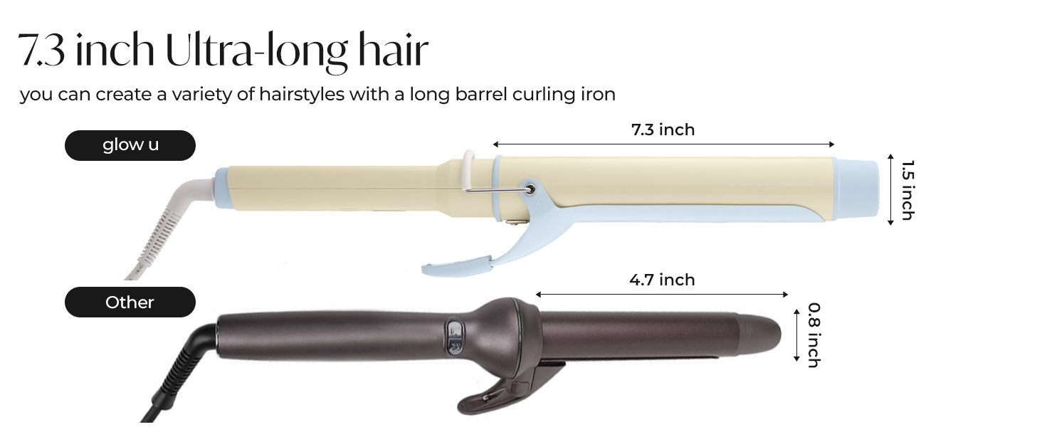 - Long Barrel for Fast Styling – Achieve gorgeous bouncy curls with ease. The 1.5 inch barrel and 7.3 inch extra-long length (excluding the cool tip) are perfect for thick, long hair, saving you time while styling.