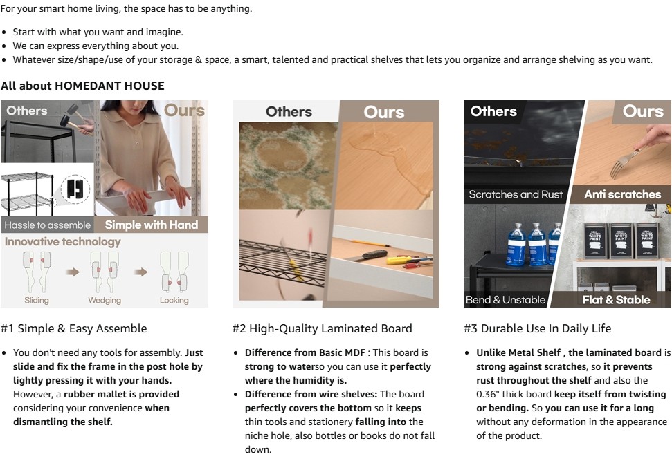 • EASY BOLTLESS ASSEMBLY (MALLET INCLUDED) – No bolts or nuts required. Simply slide and lock parts together using the included Rubber Mallet. Shelves are height-adjustable in 1.18-inch increments.