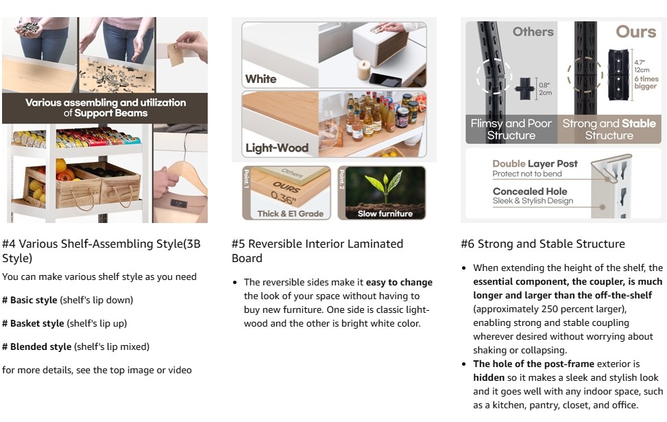 • CUSTOMIZABLE FLAT OR BASKET SHELVES – Unique reversible steel frame allows assembly as a flat shelf for open access or a deep basket-style tray to prevent items from falling. Mix and match to suit your needs.