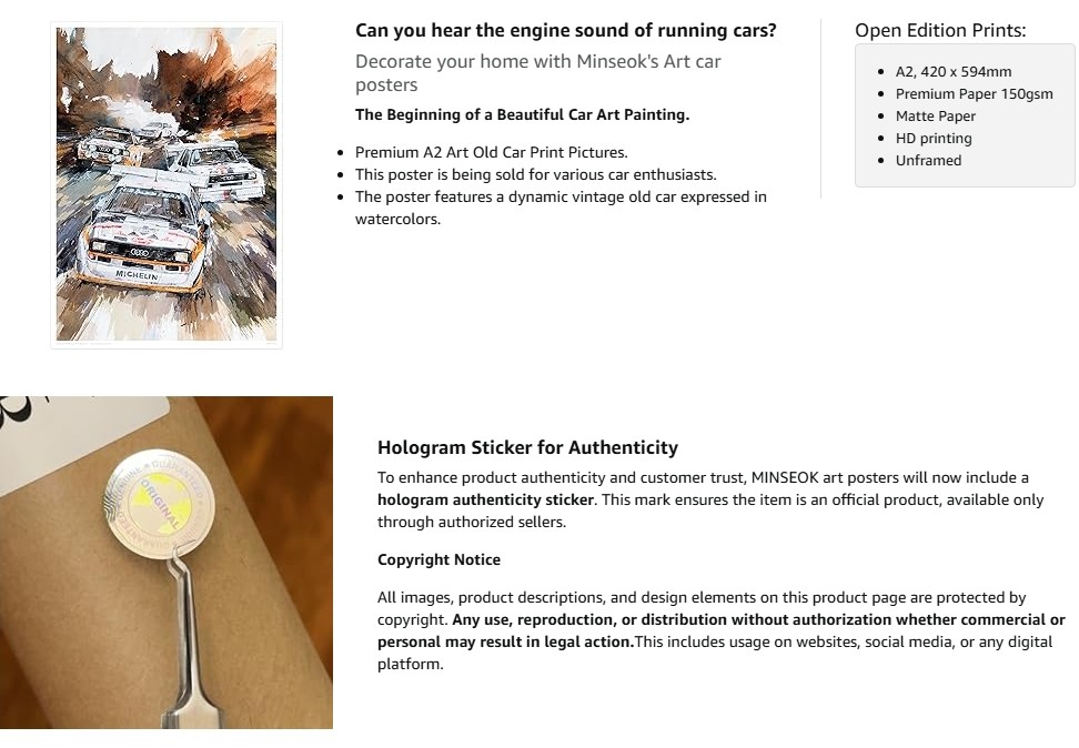 • Size 420 x 594mm Perfect size for wall art Unframed Matte Paper, Paper 150gsm, This poster is painted in a variety of cars