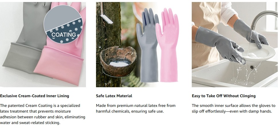 Rubber Gloves for Dishwashing & Cleaning – Reusable Latex with Cream-Coated Inner Lining, Sweat-Free Easy to Remove